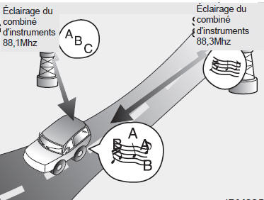 Cependant, il peut arriver que le signal parvenant à votre véhicule ne soit pas clair et puissant. Cette situation est attribuable à différents facteurs, notamment l'éloignement de la station émettrice, la proximité d'autres stations de radio puissantes, ou la présence d'édifices, de ponts ou autres obstructions dans le secteur.