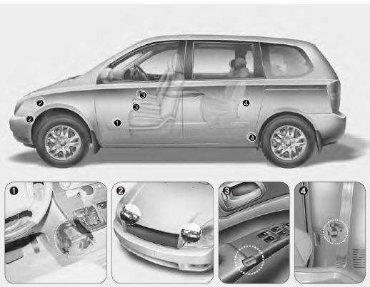 Si le châssis du véhicule est accidenté par des trous ou des objets sur des routes ou des trottoirs mal entretenus, les coussins gonflables peuvent se déployer. Conduire prudemment sur les routes ou surfaces difficiles et non conçues pour la circulation des véhicules, afin d'éviter le déploiement imprévu du coussin gonflable.