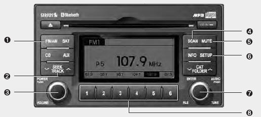 Kia Carnival: Radio, réglage, volume et commande sonore