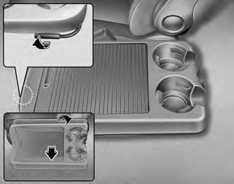 Pour utiliser le compartiment de rangement situé sur la tablette latérale, appuyer sur le couvercle. Ne pas replier la tablette si des articles se trouvent dans le compartiment de rangement, car cela pourrait les endommager.